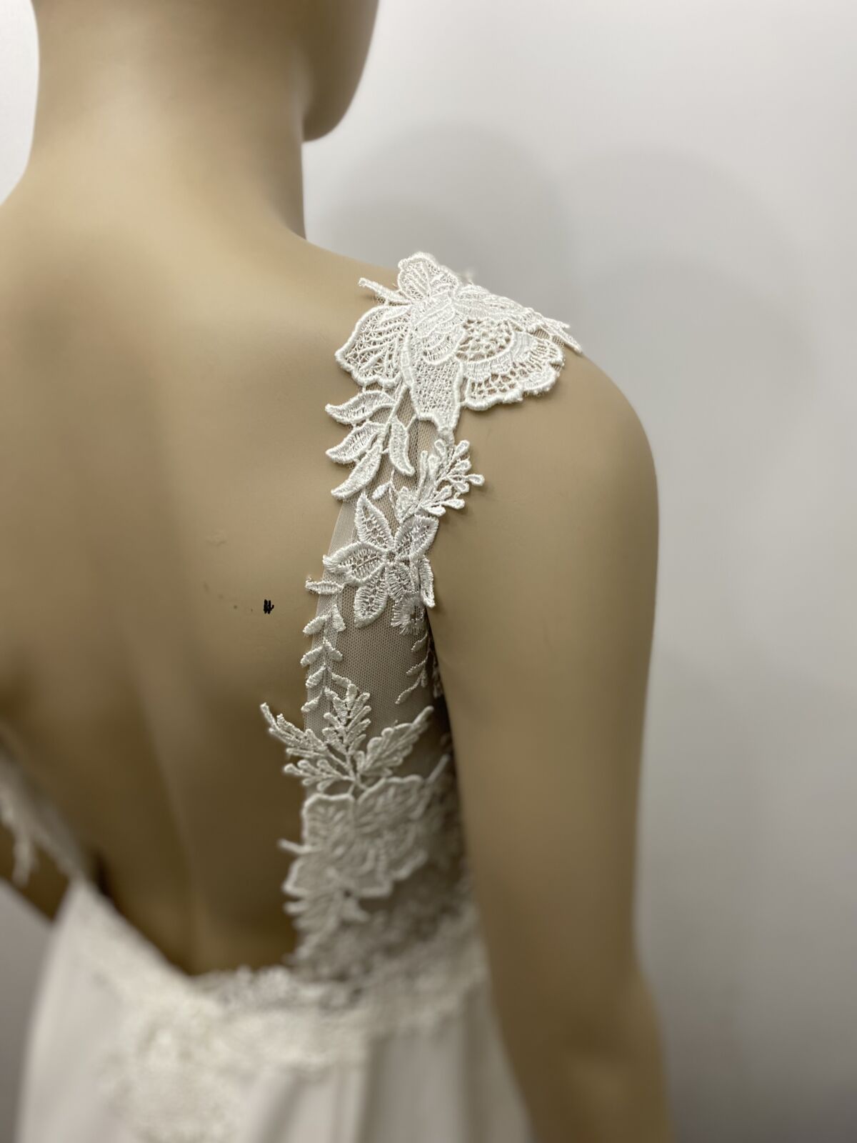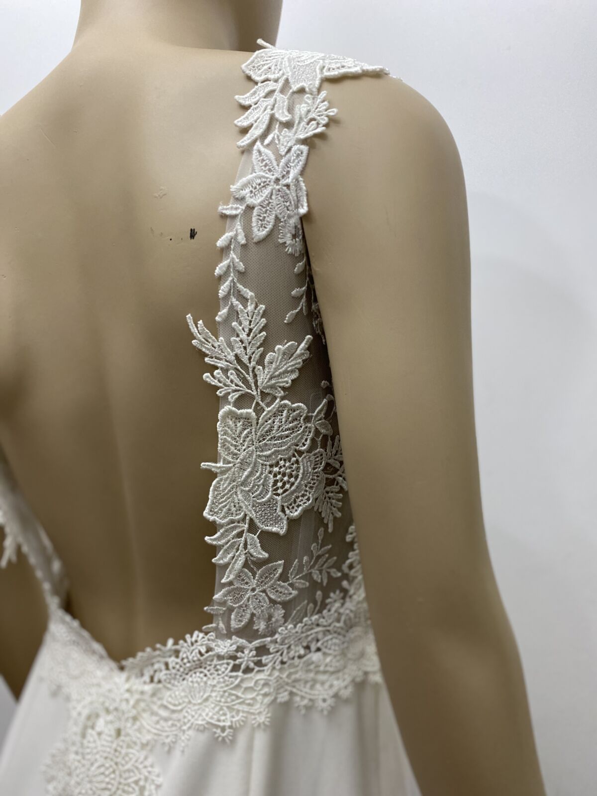 • El guipure tiene una diversidad de flores y hojas de distintos diseños y tamaños, algunas de ellas con suave relieve.