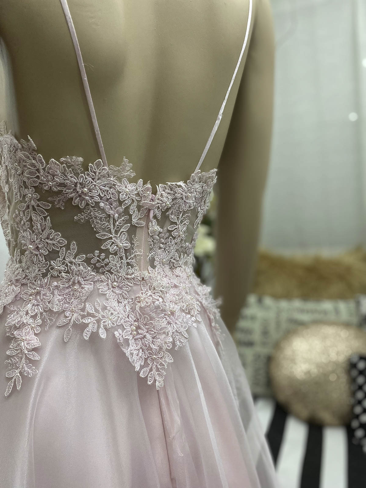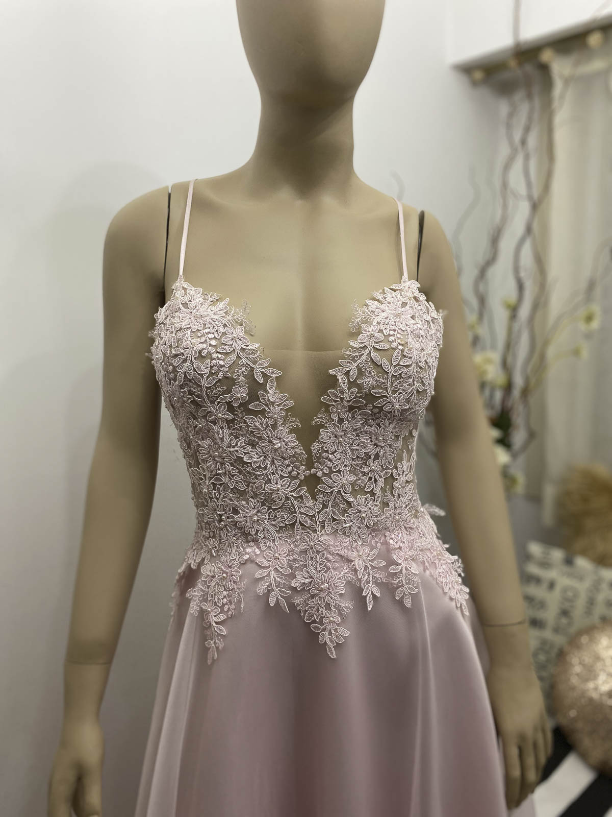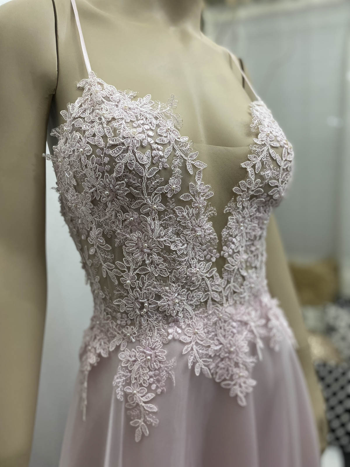 • El encaje del corsage tiene el brillo de paillettes y canutillos.