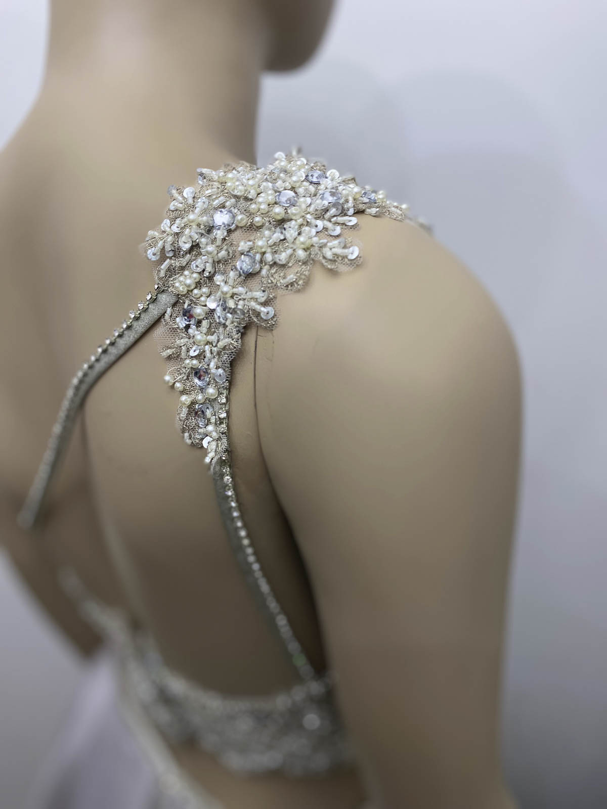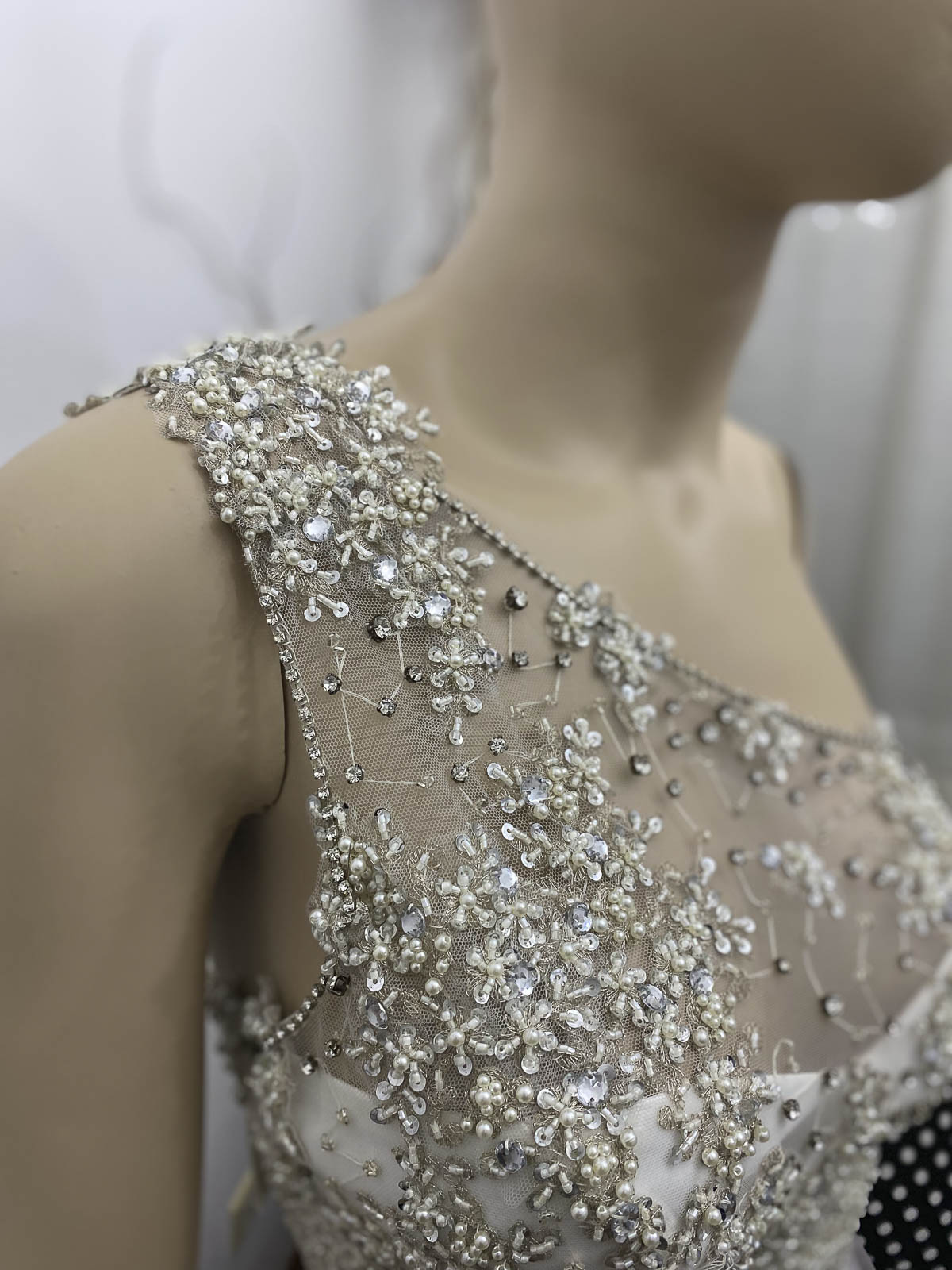 • El tul del corsage tiene un agregado de bordado a mano de strass así como los breteles y la cintura de la falda.